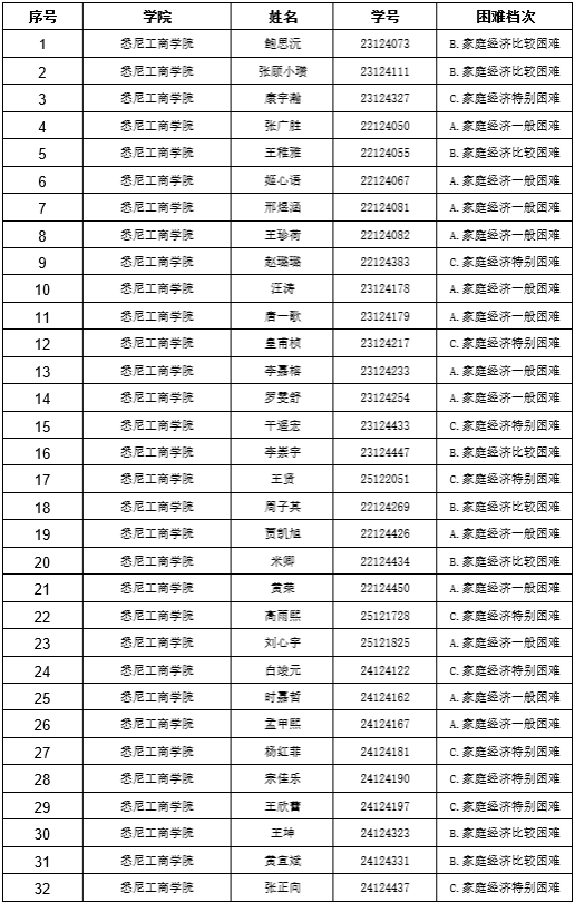 经学生本人申请并递交相关困难认定材料,学院成立院级评审小组初审,本年度家庭经济困难学生申请认定结果如下,现进行公示5个工作日,如有异议,请在11月3日前联系辅导员或学院帮困负责人钱俊迪老师,电话:69980028-71045,邮箱:qjd5238@shu.edu.cn。