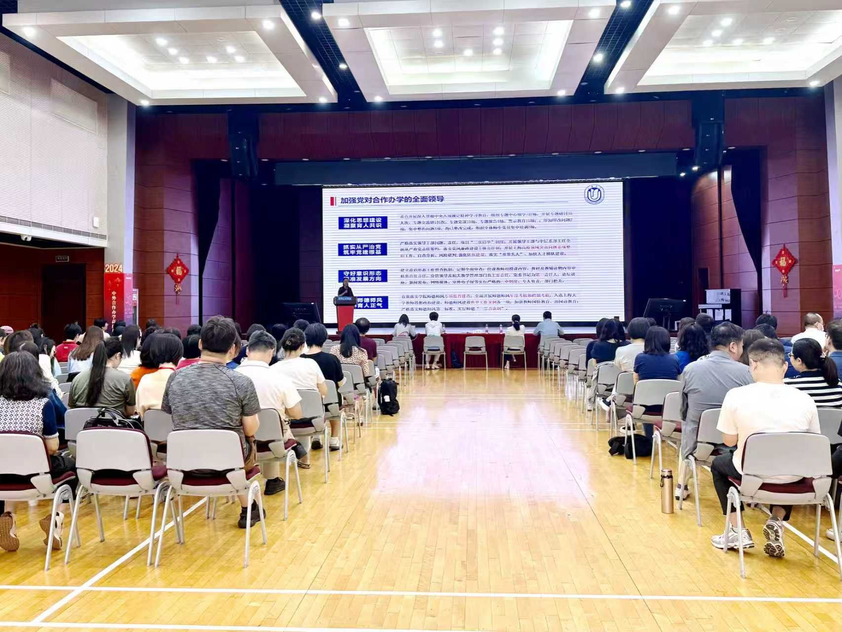 暑热初消,秋风送爽。9月19日上午,800全讯白菜网新学年全体教职工大会在嘉定校区行健文体中心举行。学院党委书记吕康娟,副书记、副院长卫静芬,副院长方慧,副院长霍伟伟,副院长(挂职)蔡震尧出席会议并讲话,会议由吕康娟书记主持。 吕康娟书记首先代外出参加培训的卞亦文院长介绍了学院近期人事变动情况、上学年人事考核结果、本学年招生情况、上半年学院重要行政工作推进情况、上半年学院科研成果以及下半年将重点推进的各项工作。 吕书记传达了我校深化综合改革的最新精神,对暑假期间学院各项重要工作有条不紊的顺利推进情况表示了肯定。她首先总结了学院深入贯彻中央八项规定精神学习教育各项工作,接着从“深化思想建设、凝聚育人共识”,“ 抓实从严治党、筑牢党建根基”,“ 守好意识形态、把准发展方向”,“ 严抓师德师风、涵养育人正气”等四个方面,强调了党对中外合作办学事业的全面领导,勉励大家在新学年以饱满的斗志、振奋的精神,把学院工作提升到更高水平。 霍伟伟副院长介绍了学院上半年以来重点推进的学期制优化工作和学院教育教学创新重点工作,布置了学期制优化后第一个学期的运行、国家一流专业评估、本科毕业论文、引导学生科学、规范使用AI工具等开学以后马上启动的各项工作。她提醒老师们必须守住教学运行“安全线”、教师授课“红线”和学生毕业的“合格线”。 卫静芬副书记介绍了2025届毕业生去向情况、2025年本科招生情况,重点介绍了“挑战杯”学生竞赛、中国国际大学生创新大赛、申报暑假社会实践项目、文荟本科生学术论坛等新学年即将开展的学生工作。 方慧副院长介绍了研究生管理部、外联部2025年KPI的推进情况,分享了研究生招生情况、社会捐赠及社会培训等工作的最新进展,介绍了研究生招生、研究生项目开拓、研究生培养、社会服务及捐赠、财务和内控等下半年将重点开展的工作设想。 蔡震尧副院长(挂职)介绍了来华留学生、来华交换生、开拓海外EDP项目、EDUniversal排名新突破等近期国际部重要工作成果,从学期制优化、学历留学生和交换生工作、高质量的国际合作、继续开拓海外EDP 等方面介绍了下半年国际化工作的设想。 路虽远,行则将至;事虽难,做则必成!800全讯白菜网全体教职工将以此会议为契机,以饱满的热情和昂扬的斗志投入到新学年的各项工作中,努力开创学院发展新局面。 |